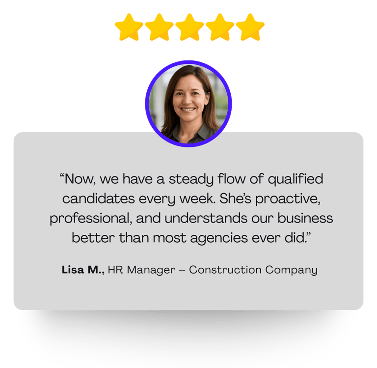 “Now, we have a steady flow of qualified candidates every week. She’s proactive, professional, and understands our business better than most agencies ever did.”