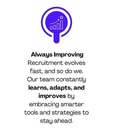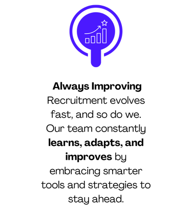 This ensures consistent performance, strong communication, and an Expert Recruiter who stays aligned with your goals — the advantage of an outsourced recruiter model backed by real oversight, structure, and transparency.